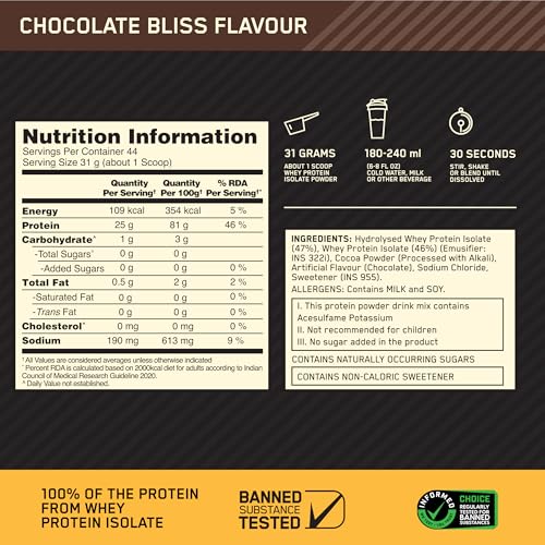 To create GOLD STANDARD ISOLATE we start by selecting only the highest quality whey protein which undergoes a series of sophisticated filtration processes to âisolateâ out excess fat cholesterol and sugar. A portion of this Whey Protein Isolate is then hydrolyzed â broken down into smaller chains of amino acids. The final product is a fast-digesting complete protein containing no more than 1 gram of carbohydrates less than a gram of fat and more than 80% pure protein per serving to support your muscle building performance and fitness goals.
