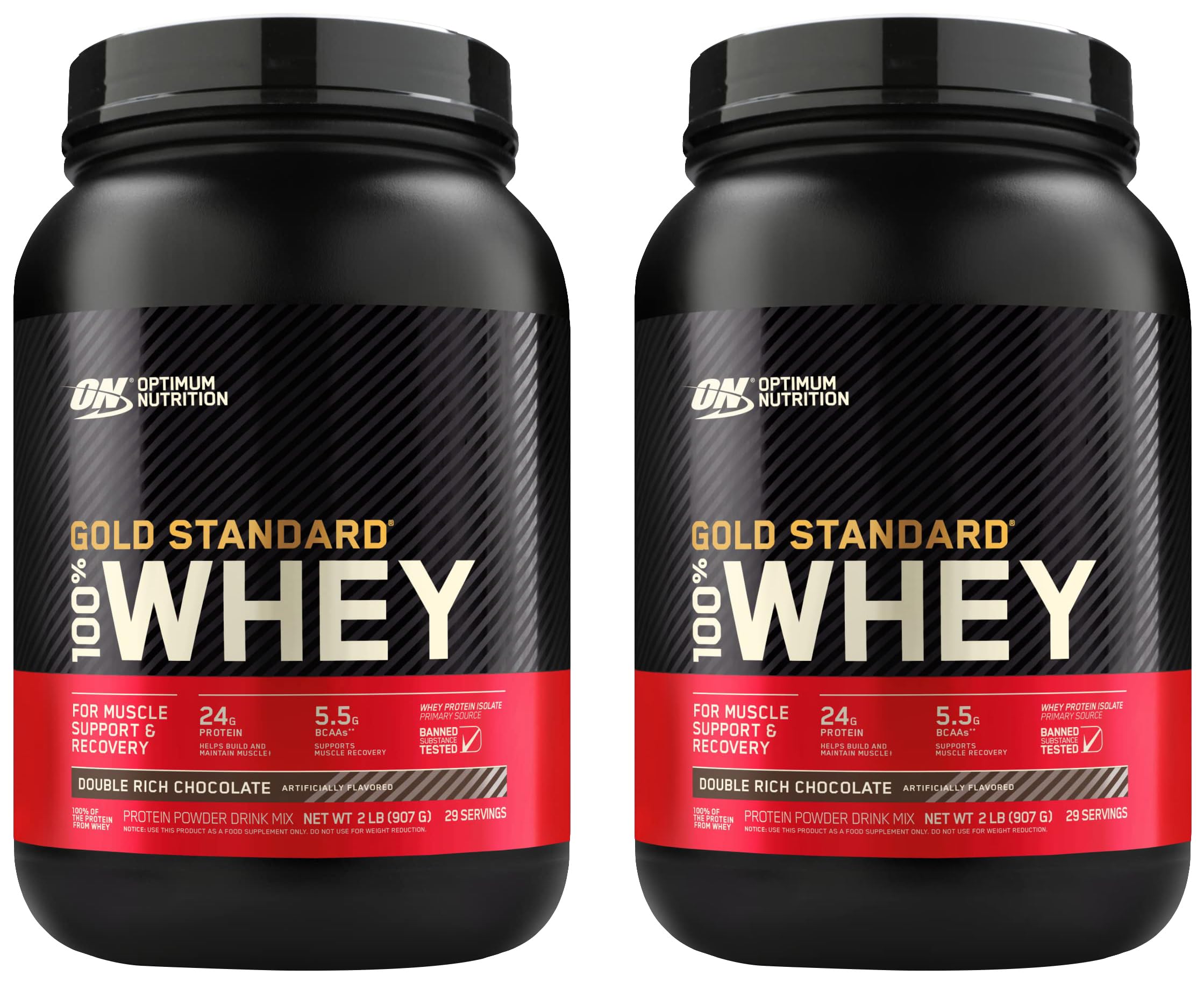 Optimum Nutrition (ON) Gold Standard 100% Whey (2 lbs/907 g) (Double Rich Chocolate) Protein Powder for Muscle Support & Recovery Vegetarian - Primary Source Whey Isolate (Pack of 2)