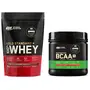 Optimum Nutrition (ON) Gold Standard 100% Whey Protein Powder - 1 lb (Double Rich Chocolate) Primary Source IsolateOptimum Nutrition's Gold Standard 100% Whey uses pure Whey Protein Isolates as the primary ingredient. Combined with ultra-filtered whey protein concentrate each serving provides 24 grams of all-whey protein and 5.5 grams of naturally occurring Branched Chain Amino Acids (BCAAs) which are prized by athletes for their muscle building qualities. With 10 tempting flavors to choose from ON Gold Standard 100% Whey gives you plenty of ways to keep workout recovery interesting. To instantly check the authenticity of your ON product SMS us your 6 digit unique code (on the pack) at 57575 or visit our wesite AUTHENTICATEON.inOptimum Nutrition BCAA 5g BCAAs in 2:1:1 Ratio 30 servings For Muscle Recovery & Endurance Intra workout Informed Choice certified (250gm Fruit Punch)BCAA 5000 Powder by Optimum Nutrition delivers five grams of BCAAs per serving in the preferred 2:1:1 ratio of leucine to isoleucine and valine to support muscle recovery and endurance. Itâs instantized for easy mixing into water juice or post-workout shakes. Each 250gm has 30 servings and comes in two delicious flavours.