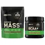 Optimum Nutrition (ON) Serious Mass High Protein High Calorie Weight Gainer Powder - 1 kg (Chocolate) with Vitamins and Minerals Suitable for VegetariansNow Suitable for Vegetarians SERIOUS MASS is the ultimate weight gain and muscle building formula. With +1200 calories per 2-scoop serving and 50 grams of protein to support muscle recovery this powder makes the ideal post-workout and between meals shake for sizing up your goals. SERIOUS MASS provides you with the tools you need to support your weight gains goals.Optimum Nutrition BCAA 5g BCAAs in 2:1:1 Ratio 30 servings For Muscle Recovery & Endurance Intra workout Informed Choice certified (250gm Fruit Punch)BCAA 5000 Powder by Optimum Nutrition delivers five grams of BCAAs per serving in the preferred 2:1:1 ratio of leucine to isoleucine and valine to support muscle recovery and endurance. Itâs instantized for easy mixing into water juice or post-workout shakes. Each 250gm has 30 servings and comes in two delicious flavours.