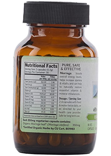 Moringa Capsule is made from organic Moringa leaf (Moringa oleifera) which boosts overall energy levelsThis capsule helps to increase stamina and vitality and can help to restore naturally essential vitamin and mineral imbalances