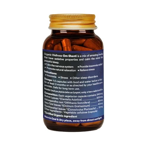 Organic Wellness - Om-Shanti,Ayurvedic Capsule,Peaceful Sleep,Calm The Nervous System,Relieve Stress,90 N Veg Capsule