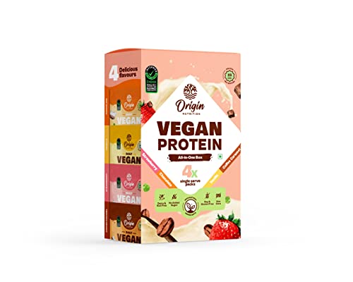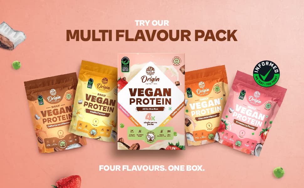 Origin Nutrition 100% Natural Plant Protein Powder Multi Flavour Pack (Chocolate Strawberry Vanilla and Coffee Caramel)