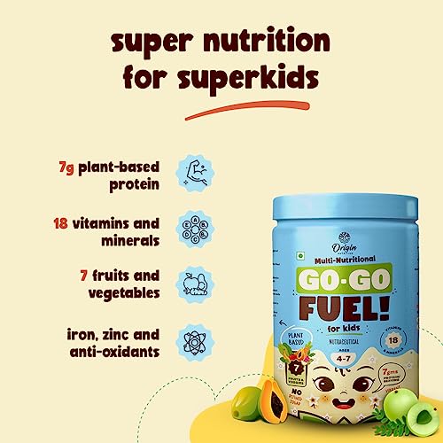 Origin Nutrition Go-Go Fuel | Vegan Multi Nutritional Vanilla drink for with 7gm Plant-Based Protein 7 fruits and vegetables 18 minerals and vitamins. -Free Soy Free Dairy Free No added Sugar Soy Free Non - GMO ages 4-7 400g