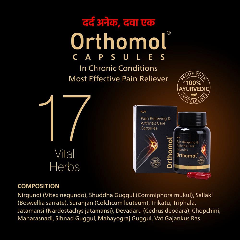 Orthomol Ayurvedic Pain Relief 10 Capsules for Joint Pain Muscular Pain Rheumatoid Arthritis Osteoarthritis Knee Pain 10 Capsules (Pack of -1)
