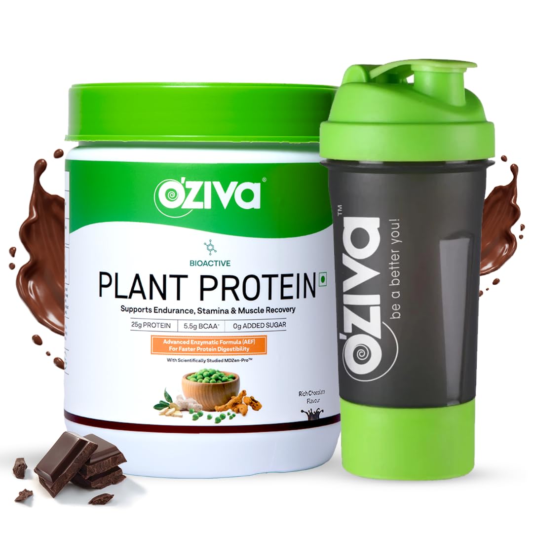 • Better Muscle Growth with OZiva Bioactive Plant Protein: OZiva Bioactive Plant Protein includes 25g Protein from Pea Brown Rice & Mung Bean per serving. Plant-based proteins contain several amino acids that are essential to signal muscle growth/repair and