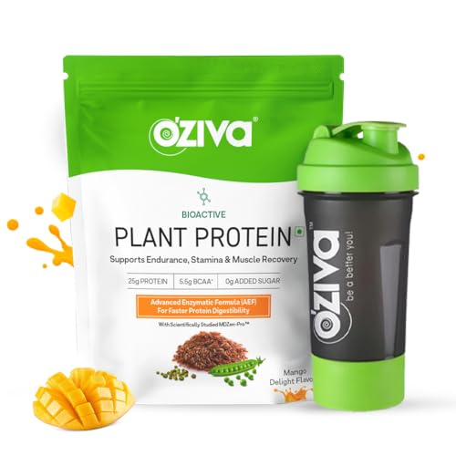 OZiva Bioactive Plant Protein for Everyday Fitness | 25g Protein - Pea Isolate | Complete Plant Protein Powder | No Added Sugar, Certified Clean & Vegan (Mango, 1kg + Shaker)
