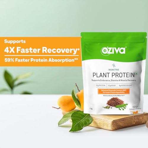 OZiva Bioactive Plant Protein for Everyday Fitness | 25g Protein - Pea Isolate || Complete Plant Protein Powder | No Added Sugar Certified Clean & Vegan (Mango 1kg)