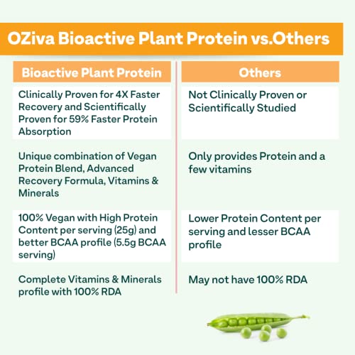 Better Muscle Growth with OZiva Bioactive Plant Protein: OZiva Bioactive Plant Protein includes 25g Protein from Pea Brown Rice & Mung Bean per serving. Plant-based proteins contain several amino acids that are essential to signal muscle growth/repair and