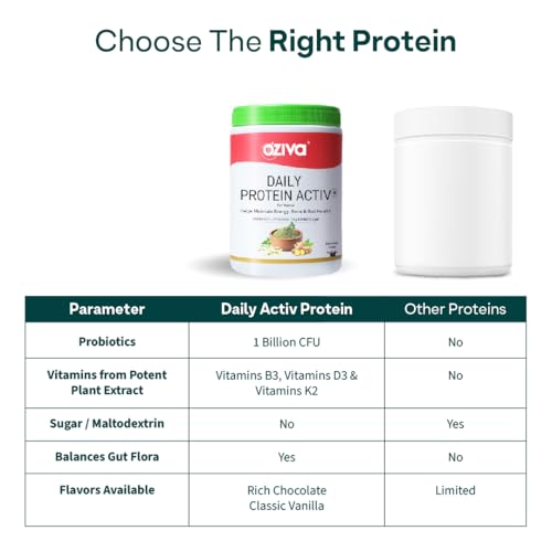 • OZiva Daily Protein Activ maintains hormonal balance in the body with Clean Protein Blend and herbal extracts such as Shatavari Extract Pomegranate Extract and Tulsi Extract.