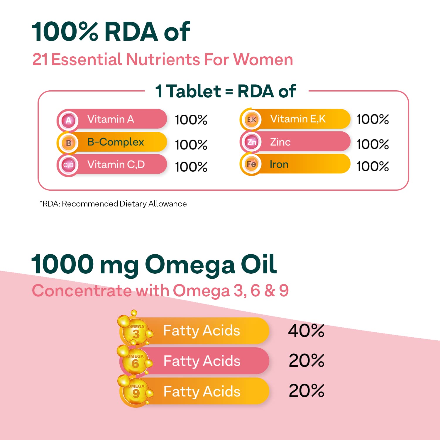 • Helps support development of the body with essential nutrients for women like Iron Folic Acid and Zinc.