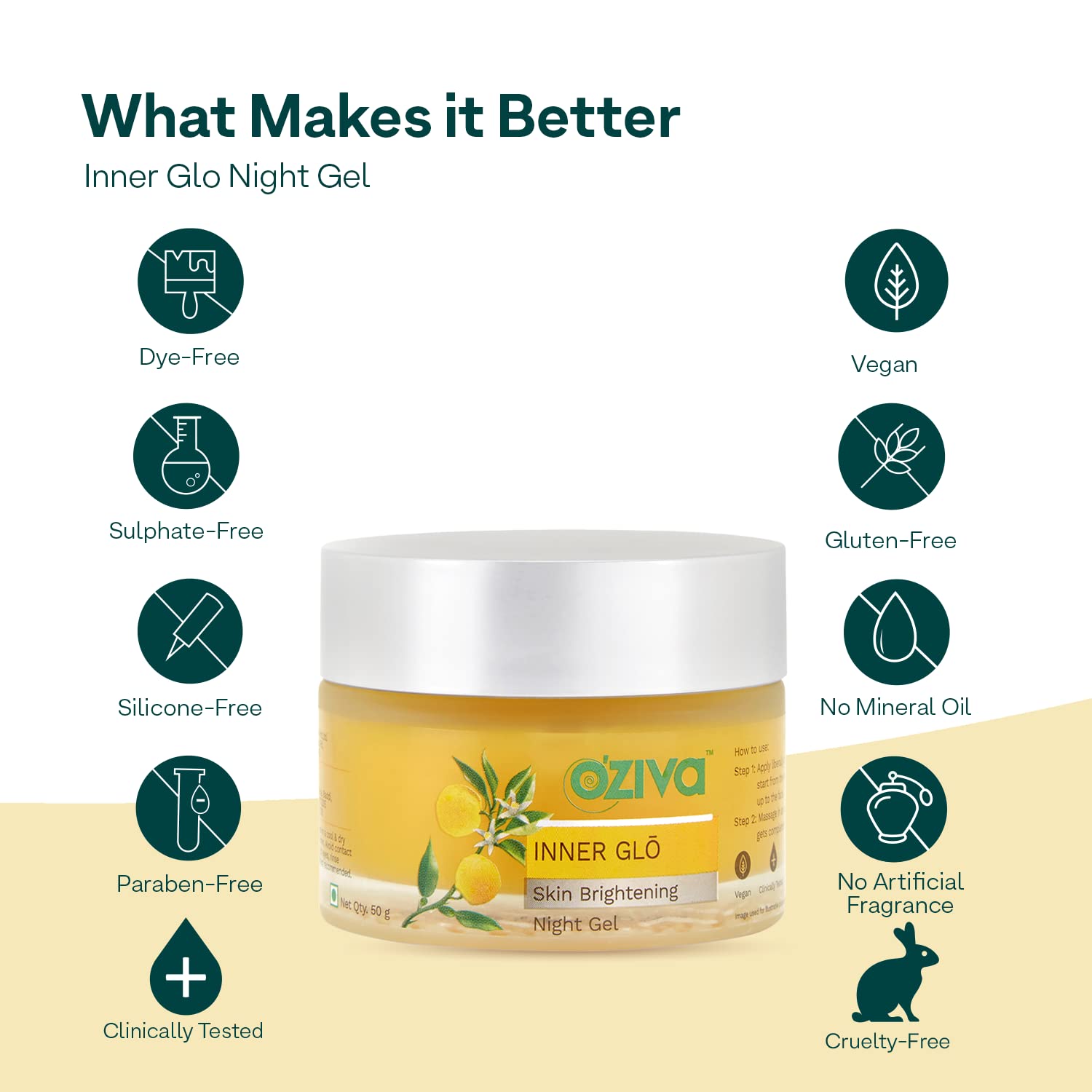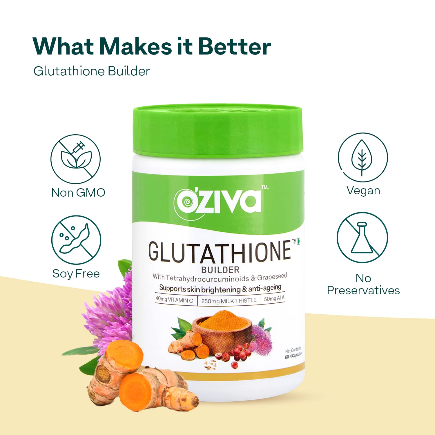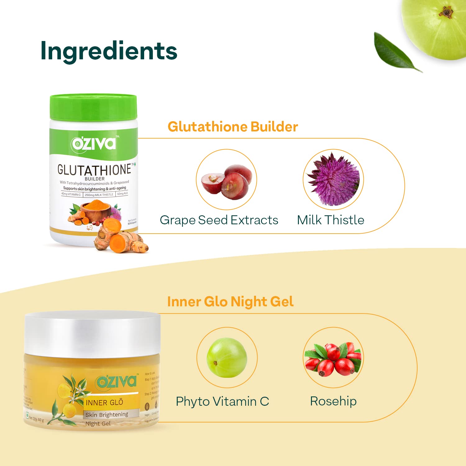 OZiva Glutathione Builder (with ALA Skin Vitamins & Selenium (Glutathione + Skin Brightening Night Gel Combo Pack)