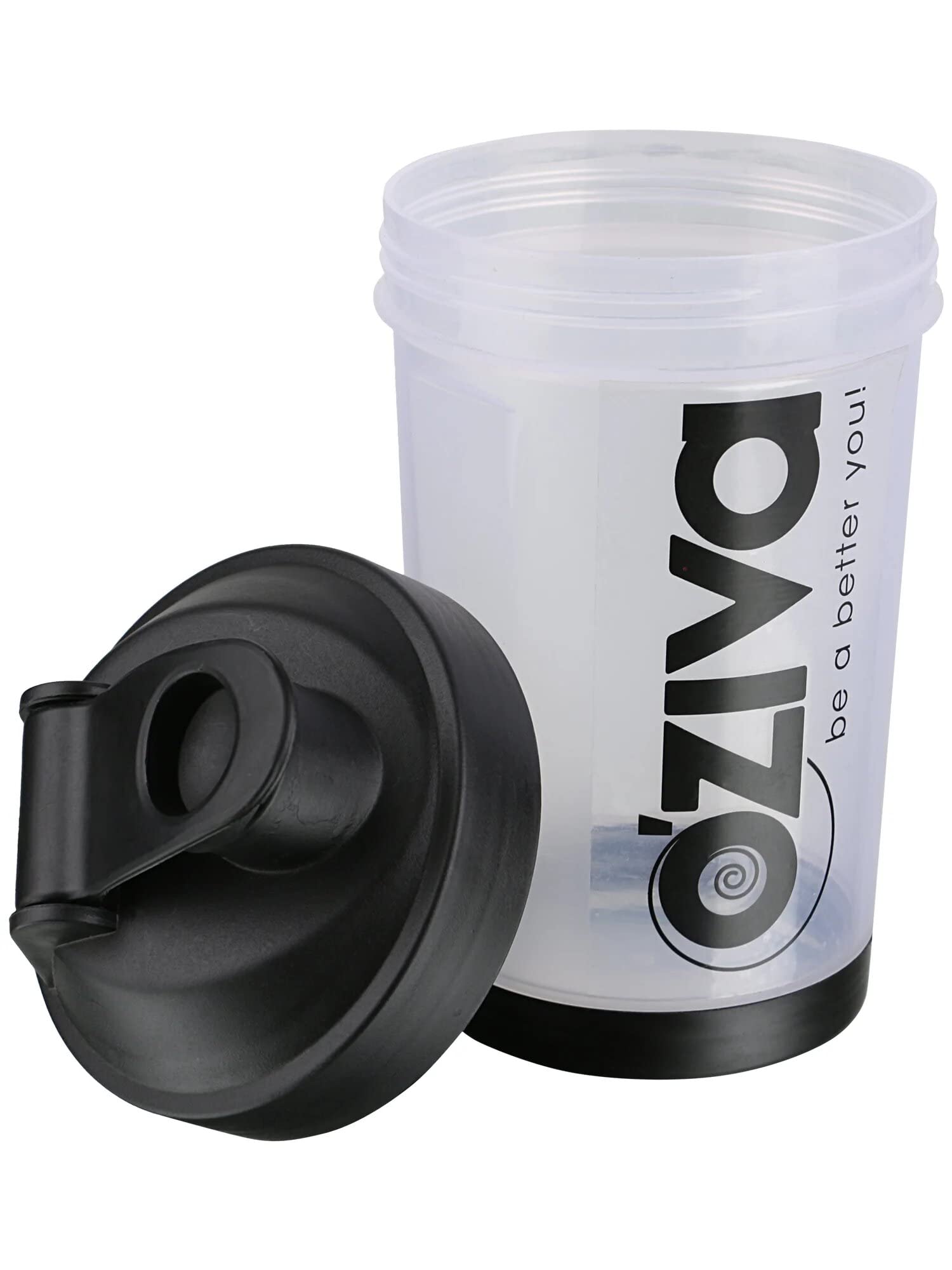 OZiva Gym Shaker Bottle for Men & Women 500ml shaker bottle for protein shake 100% Leakproof blender bottle (Black top with Markings)