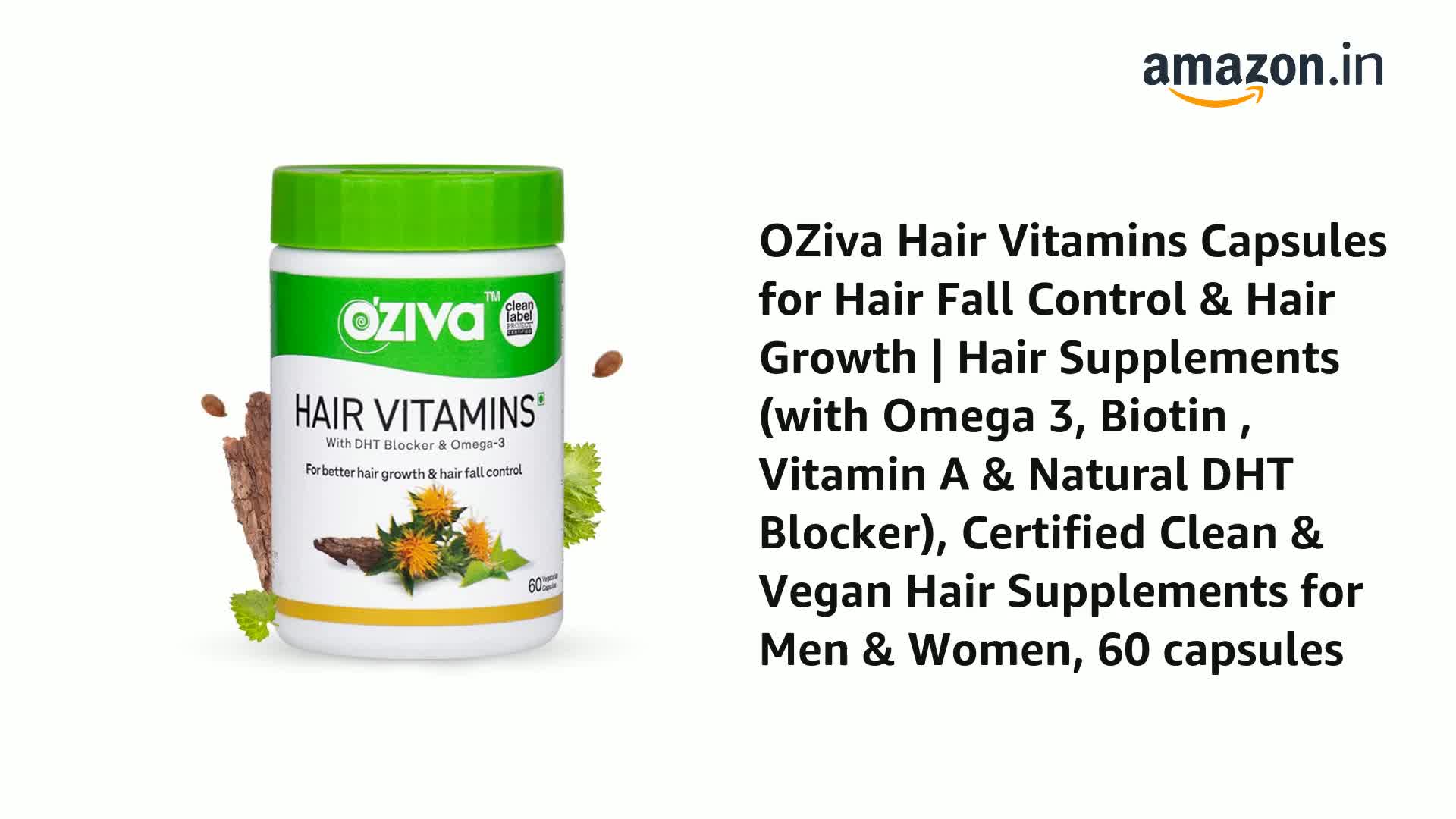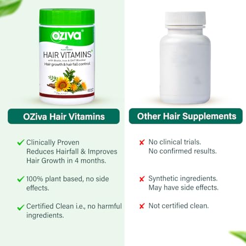 • OZIVA HAIR VITAMINS FOR HAIR GROWTH & HAIRFALL CONTROL: Formulated with 100% pure plant extracts OZiva hair growth capsules for women and men nourish hair roots and strengthen hair follicles to reduce hair fall and improve hair growth. OZiva is India’s
