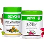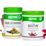OZiva Hair Vitamins with DHT & Omega-3, 60 Capsules + Plant Based Biotin Powder, 125g with Amla for Hairfall Control & Better Hair Growth, Combo Pack
