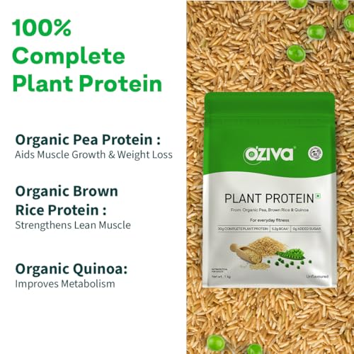 • Plant Protein Powder for Everyday Fitness: OZiva Organic Plant Protein promotes everyday fitness for men and women by providing 30g Complete Protein of essential Aminos combining Organic Pea Protein Isolate Organic Brown Rice Protein and Organic Quinoa.