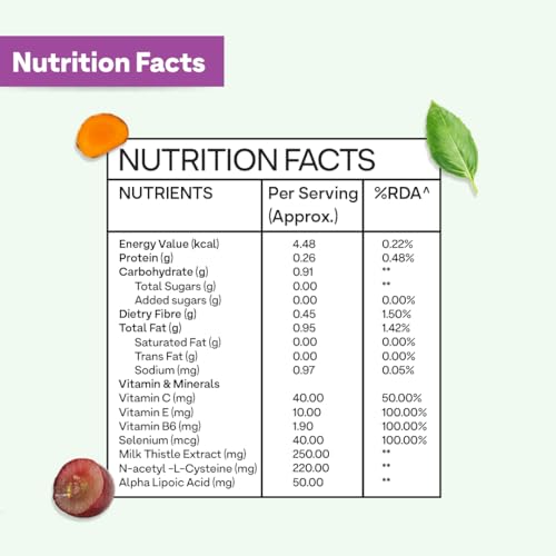 • SKIN HYDRATION: Apart from retaining Glutathione in the body the OZiva Plant Based Glutathione tablets also reduce free radical activity with Vitamins (Vitamin B6 Vitamin C & Vitamin E) and minerals like Selenium which add on to the antioxidant effect. It