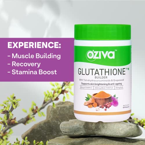 • GLUTATHIONE SUPPLEMENT FOR HEALTHY SKIN: OZiva Plant Based Glutathione Builder helps build glutathione naturally in the body unlike other oral glutathione supplements that do not contain carriers and as a result lead to the degradation of glutathione in t