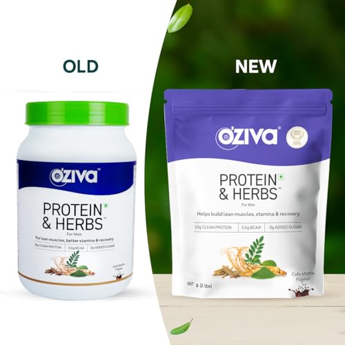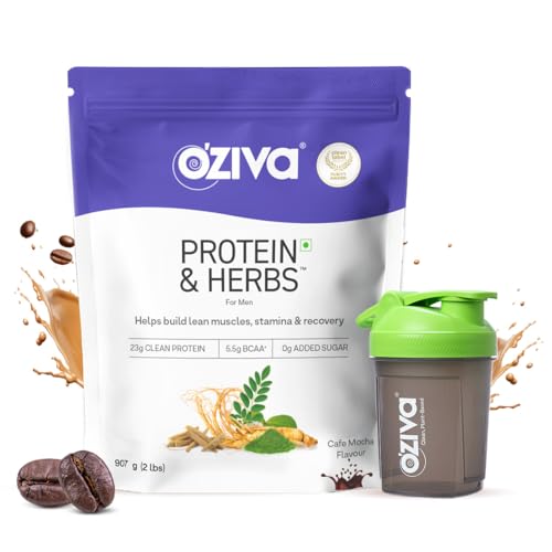 OZiva Protein & Herbs for Men (Cafe Mocha) I Muscle Building, Stamina & Recovery | Clean Protein, Shatavari, Green Tea I No Added Sugar, 2lbs + Shaker