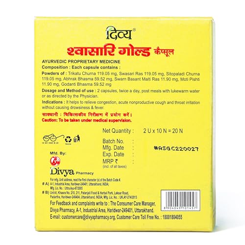Patanjali Divya Swasari Gold Capsule - 20 Tab - Pack of 1