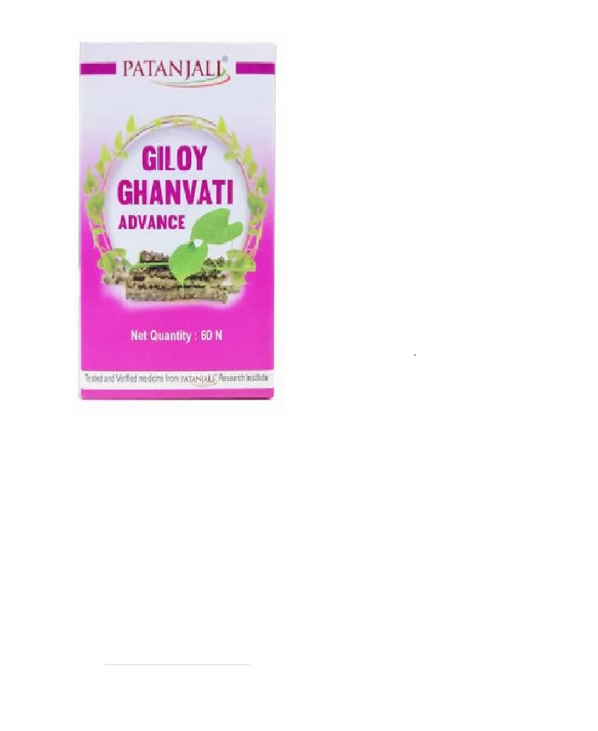 Patanjali Giloy Ghanvati Advance 60 Tab contains 60 tablets of Giloy Ghanvati Advance. The package contains one unit of Patanjali Giloy Ghanvati Advance 60 Tab in an order