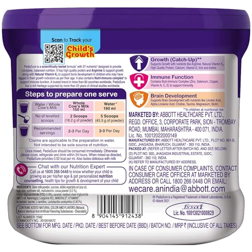 • FOR HEIGHT AND WEIGHT GAIN: PediaSure as a nutritional drink for kids is formulated with advanced growth nutrients Arginine Vitamin K2 High Quality Protein Calcium Vitamin D Iron and Iodine to support catch-up growth.
