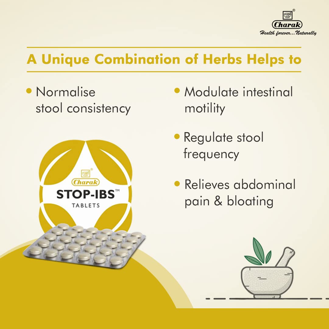 Charak Pharma Stop-IBS Tablet for Relief in Irritable Bowel Syndrome & Relieves Abdominal Gases | Healing Herbs Sunthi Bilva & Musta (30 tablets)