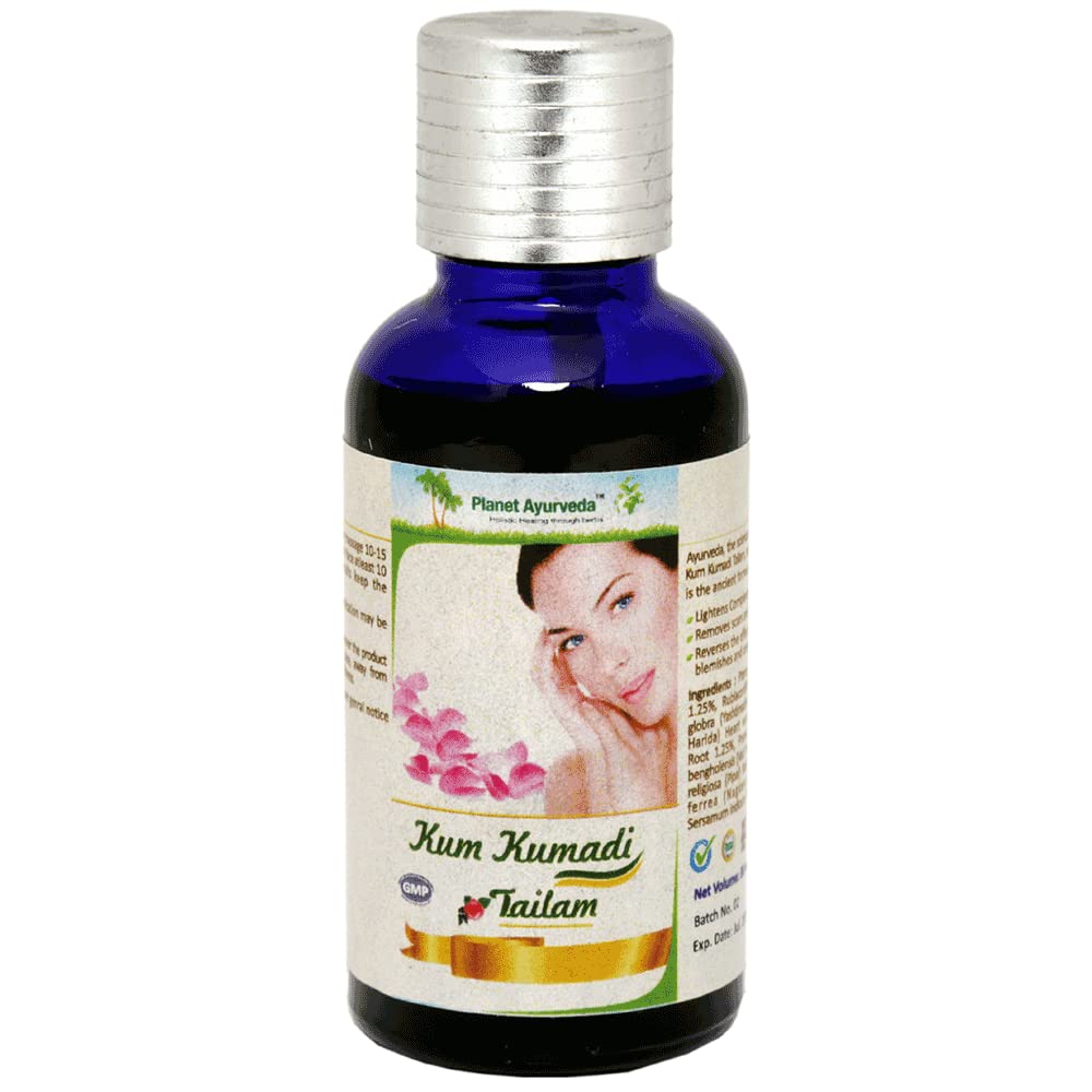It is beneficial in Skin problems. It provides nourishment to the skin. Diminish scars and fine lines over the skin. Directions for Uses - Clean face pat dry and gently massage 10-15 drops of Kum Kumadi Tailam. Allow to remain on face for at least 10-15 minutes. For best results leave the application overnight and wash in the morning. Special Instructions - Skin Sensitivity to oil application may be tested for suitability prior to application.