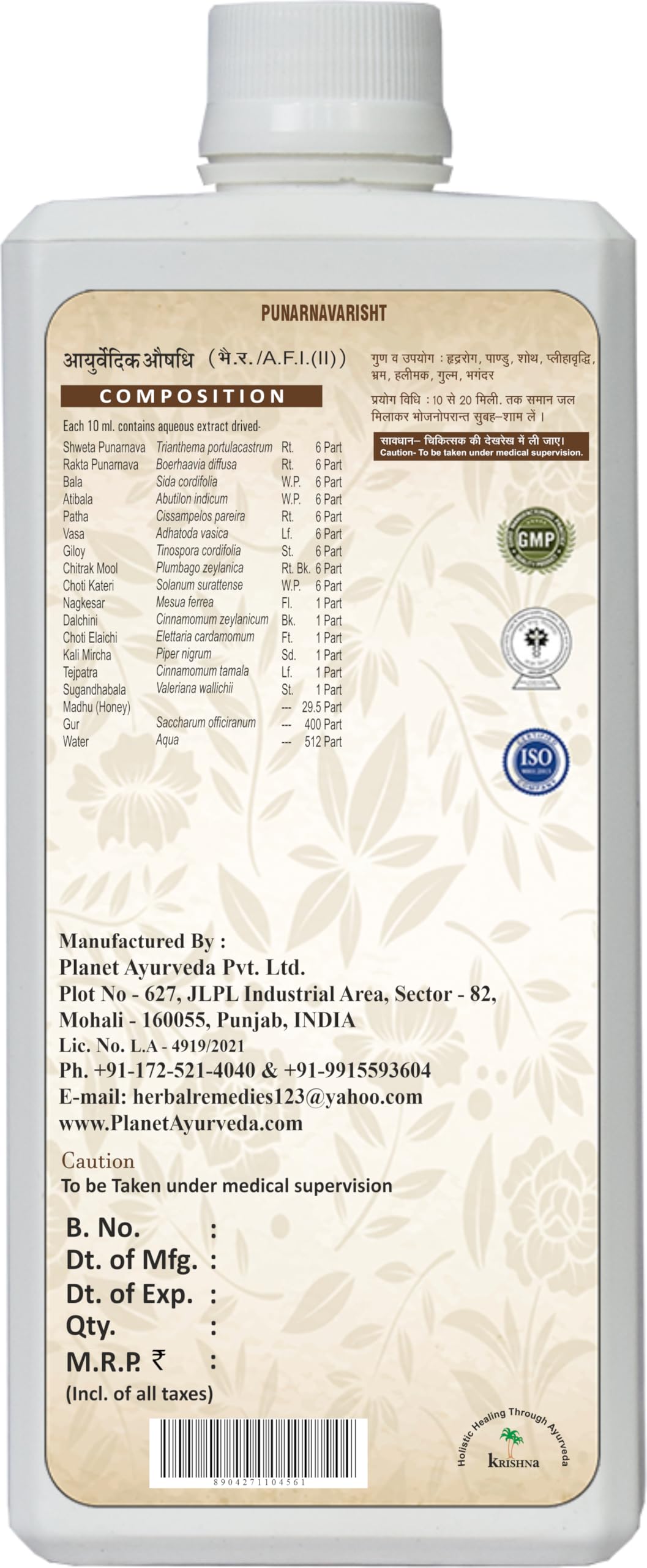 Planet Ayurveda PUNARNAVARISHT Syrup - 450 ML