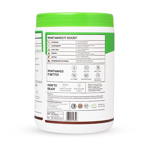 # Brand - OZiva # Speciality - Certified Clean by US CLP & Certified Vegan by Vegan Society of UK # Item Form - Powder # Special Ingredients - Shatavari Red Raspberry Chasteberry Ashoka Aloe Vera # Recommended for - Women with PCOS # Benefits - Hormone Balance Better Menstrual Cycle & Long-Term Ovulatory Health # Age range - 16 to 65 # Item Weight - 500g # Grammage - 500g