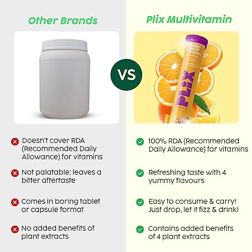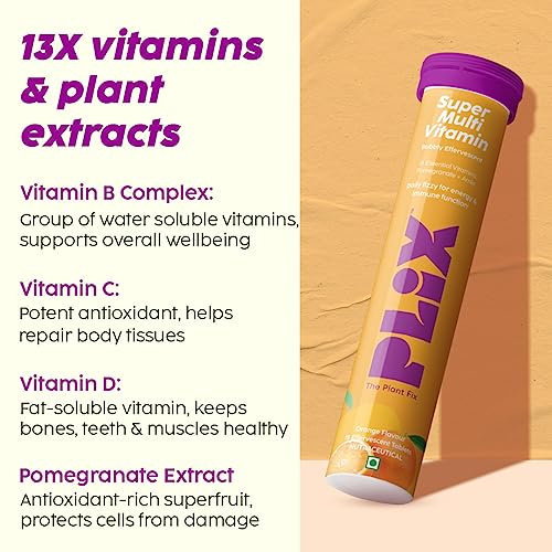 PLIX - THE PLANT FIX Multivitamin 15 Effervescent Tablets (Pack of 1, Orange) for Daily Nutrition | Strengthens Immune System, Energy, Enhanced Performance & Stamina, 100% RDA