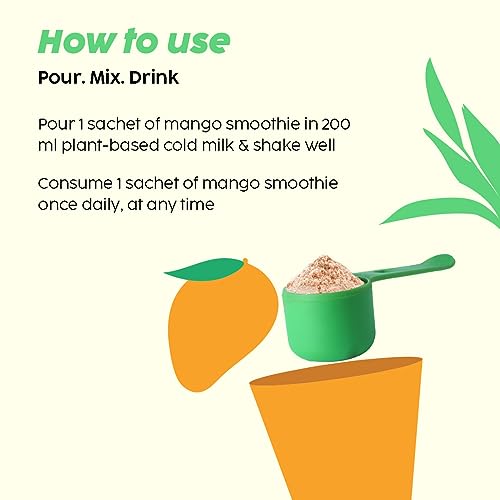 How to use: Pour. Mix. Drink! To make a delicious mango smoothie simply mix 1 sachet of mango smoothie in 200 ml plant-based cold milk then shake it well. Enjoy 1 sachet per day at any time you prefer.