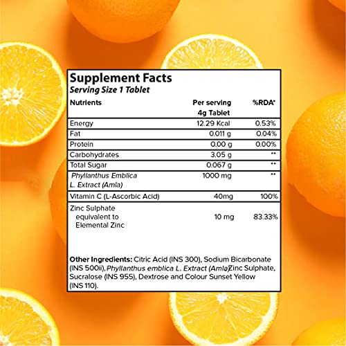 • LOADED WITH NATURAL INGREDIENTS: Our tablets are made of natural vitamin C and zinc. Vitamin C is crucial in order to maintain a healthy immune system. Each immunity boosting tablet contains 1000mg of Vitamin C extracted from Amla. The medley of natural c
