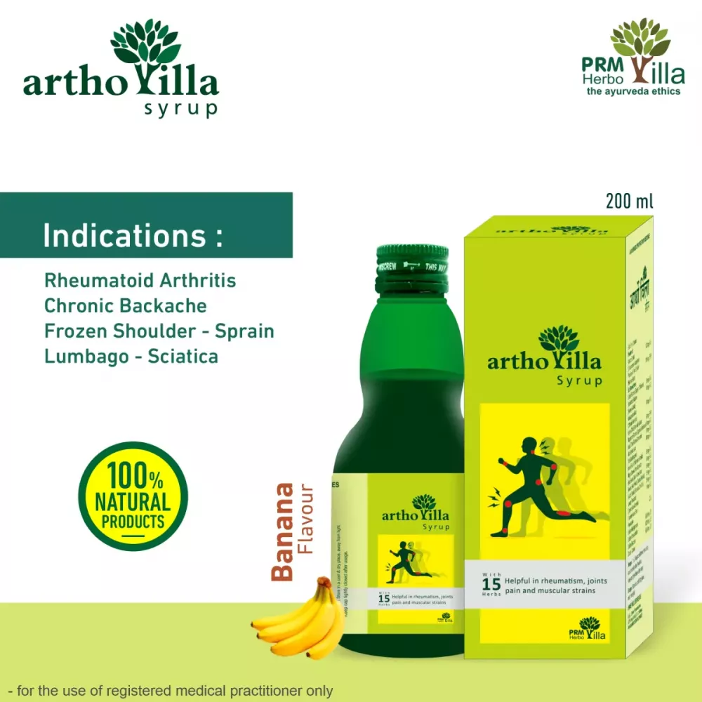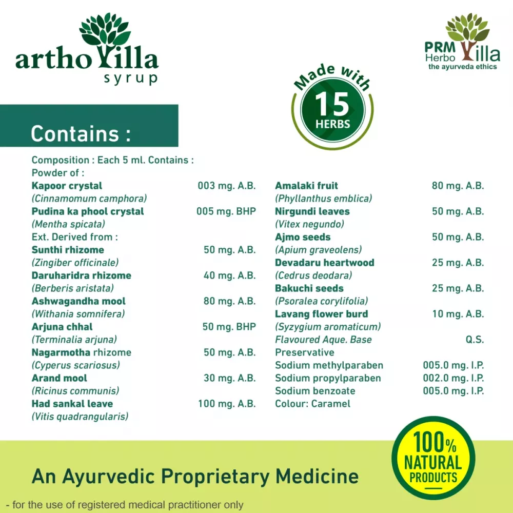 PRM Artho Villa Ayurvedic Arthritis Syrup 200ml (Pack of 2) Relieves Joint Stiffness & Inflammation with Hadsakal, Daruharidra & Sunthi