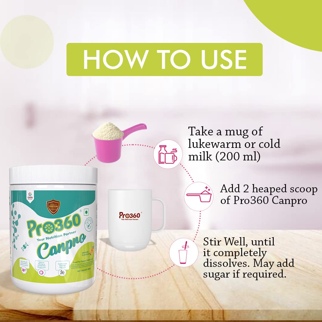 Pro360 Canpro Nutrition Supplement Powder for Chemo / Radiation Therapy Induced Weight Loss Protein Rich with Essential Nutrients Orange Flavor 400G (Pack of 1)