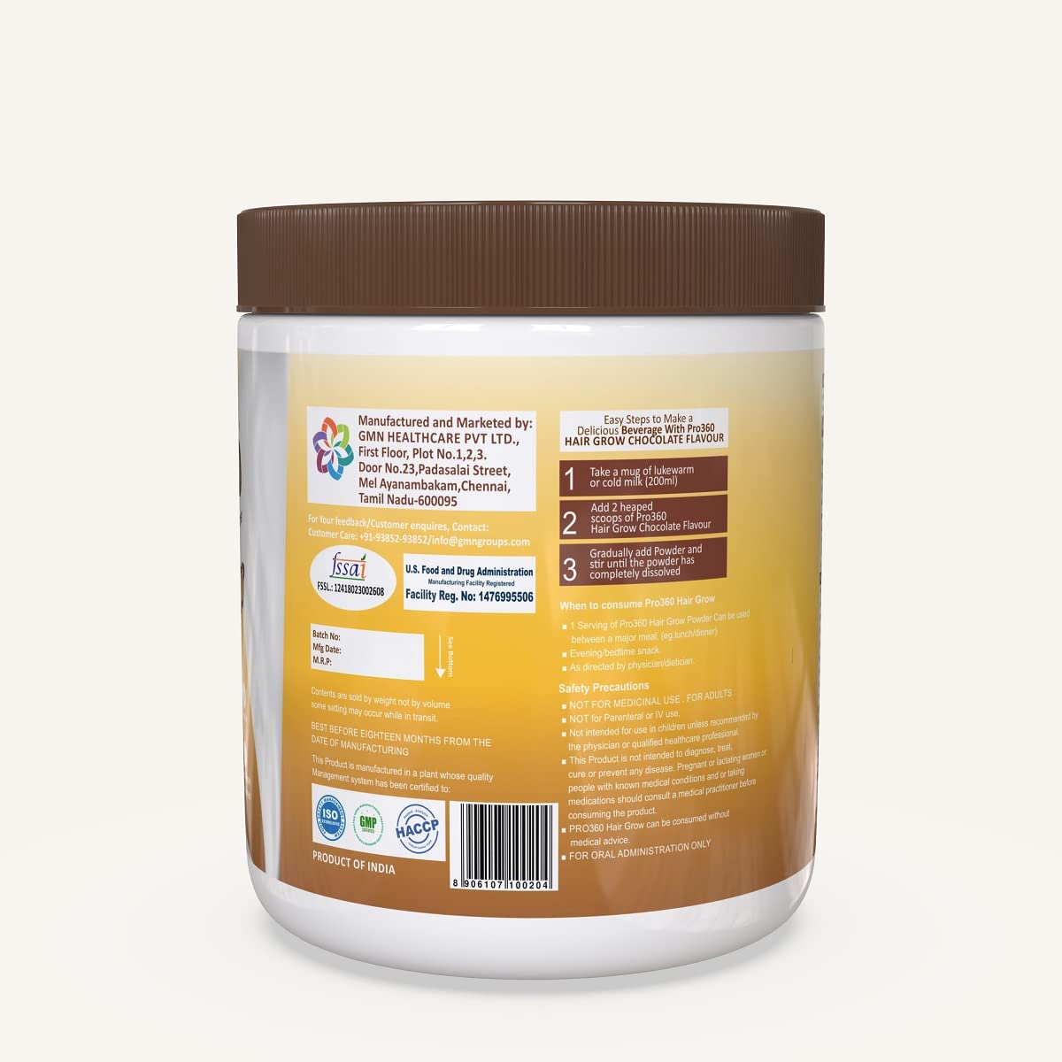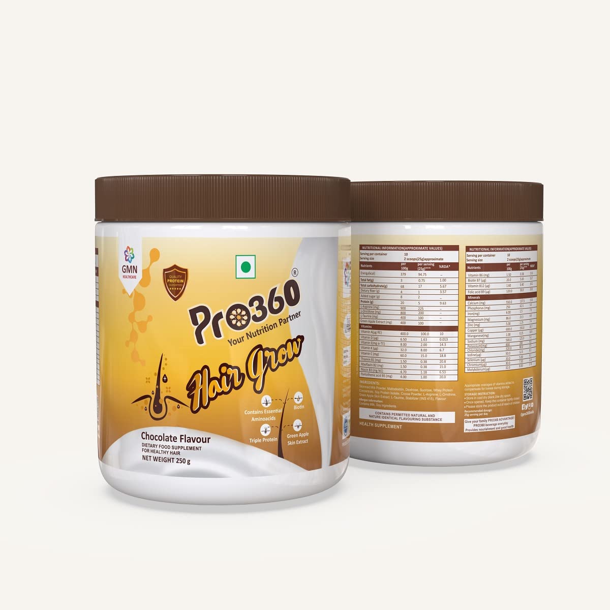 Pro360 Hair Grow Protein Powder for Healthy Hair Growth Nutrition Supplement for Men and Women - Enriched with Biotin and Green Apple Skin Extract - Chocolate Flavor (250+250) g (Pack of 2)