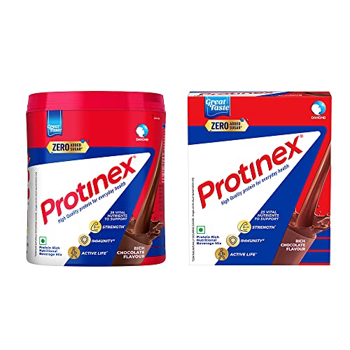 Protinex Health And Nutritional Drink Mix For Adults with High protein & 10 Immuno Nutrients Tasty Chocolate 400gProtinex Tasty Chocolate is a vegetarian ready to serve beverage mix that helps bridge the gap of nutrients from diet of Indian Adults. Protinex Tasty Chocolate is an adult nutritional drink mix that is clinically proven to provide 34% higher immuno boosters that help build immunity# 12. Protinex contains 22 essential vitamins and minerals including 10 immuno nutrients³ that help build immunity build strength and provide energy. Protinex consists of nutrients that help in building bone strength growth & maintenance of muscle mass improving metabolism formation of blood cells and maintaining fluid & electrolyte balance**. Available in chocolate flavor Protinex easily makes its place in your everyday diet plan and with zero added sugar* and low fat it is suitable for daily consumption. It can be taken with milk or water. There are no documented side effects of Protinex original however it is not recommended for people allergic to peanut.Protinex Health And Nutritional Drink Mix For Adults with High protein & 10 Immuno Nutrients Tasty Chocolate 250gProtinex Tasty Chocolate is a vegetarian ready to serve beverage mix that helps bridge the gap of nutrients from diet of Indian Adults. Protinex Tasty Chocolate is an adult nutritional drink mix that is clinically proven to provide 34% higher immuno boosters that help build immunity# 12. Protinex contains 22 essential vitamins and minerals including 10 immuno nutrients³ that help build immunity build strength and provide energy. Protinex consists of nutrients that help in building bone strength growth & maintenance of muscle mass improving metabolism formation of blood cells and maintaining fluid & electrolyte balance**. Available in chocolate flavor Protinex easily makes its place in your everyday diet plan and with zero added sugar* and low fat it is suitable for daily consumption. It can be taken with milk or water.