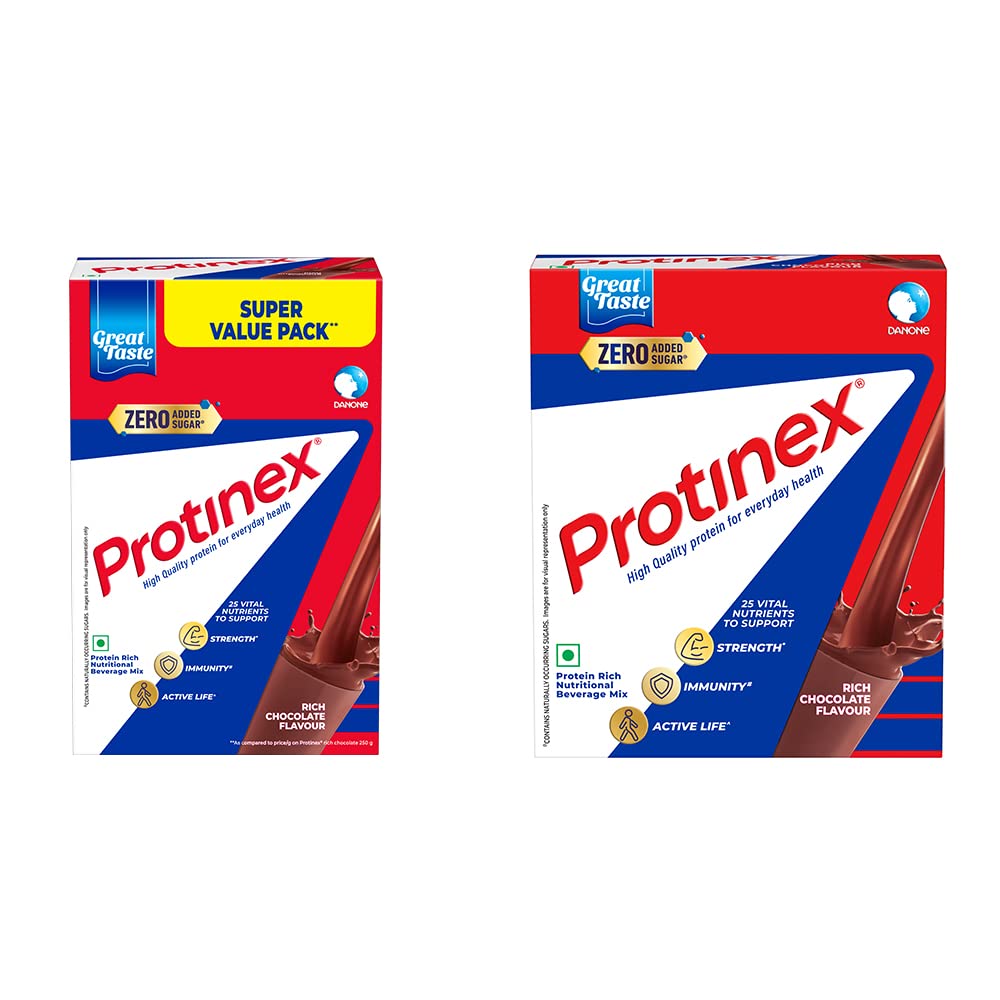 Protinex Health And Nutritional Drink Mix For Adults with High protein & 10 Immuno Nutrients Tasty Chocolate 1 KgProtinex Tasty Chocolate is a vegetarian ready to serve beverage mix that helps bridge the gap of nutrients from diet of Indian Adults. Protinex Tasty Chocolate is an adult nutritional drink mix that is clinically proven to provide 34% higher immuno boosters that help build immunity# 12. Protinex contains 22 essential vitamins and minerals including 10 immuno nutrients³ that help build immunity build strength and provide energy. Protinex consists of nutrients that help in building bone strength growth & maintenance of muscle mass improving metabolism formation of blood cells and maintaining fluid & electrolyte balance**. Available in chocolate flavor Protinex easily makes its place in your everyday diet plan and with zero added sugar* and low fat it is suitable for daily consumption. It can be taken with milk or water.Protinex Health And Nutritional Drink Mix For Adults with High protein & 10 Immuno Nutrients Tasty Chocolate 250gProtinex Tasty Chocolate is a vegetarian ready to serve beverage mix that helps bridge the gap of nutrients from diet of Indian Adults. Protinex Tasty Chocolate is an adult nutritional drink mix that is clinically proven to provide 34% higher immuno boosters that help build immunity# 12. Protinex contains 22 essential vitamins and minerals including 10 immuno nutrients³ that help build immunity build strength and provide energy. Protinex consists of nutrients that help in building bone strength growth & maintenance of muscle mass improving metabolism formation of blood cells and maintaining fluid & electrolyte balance**. Available in chocolate flavor Protinex easily makes its place in your everyday diet plan and with zero added sugar* and low fat it is suitable for daily consumption. It can be taken with milk or water.