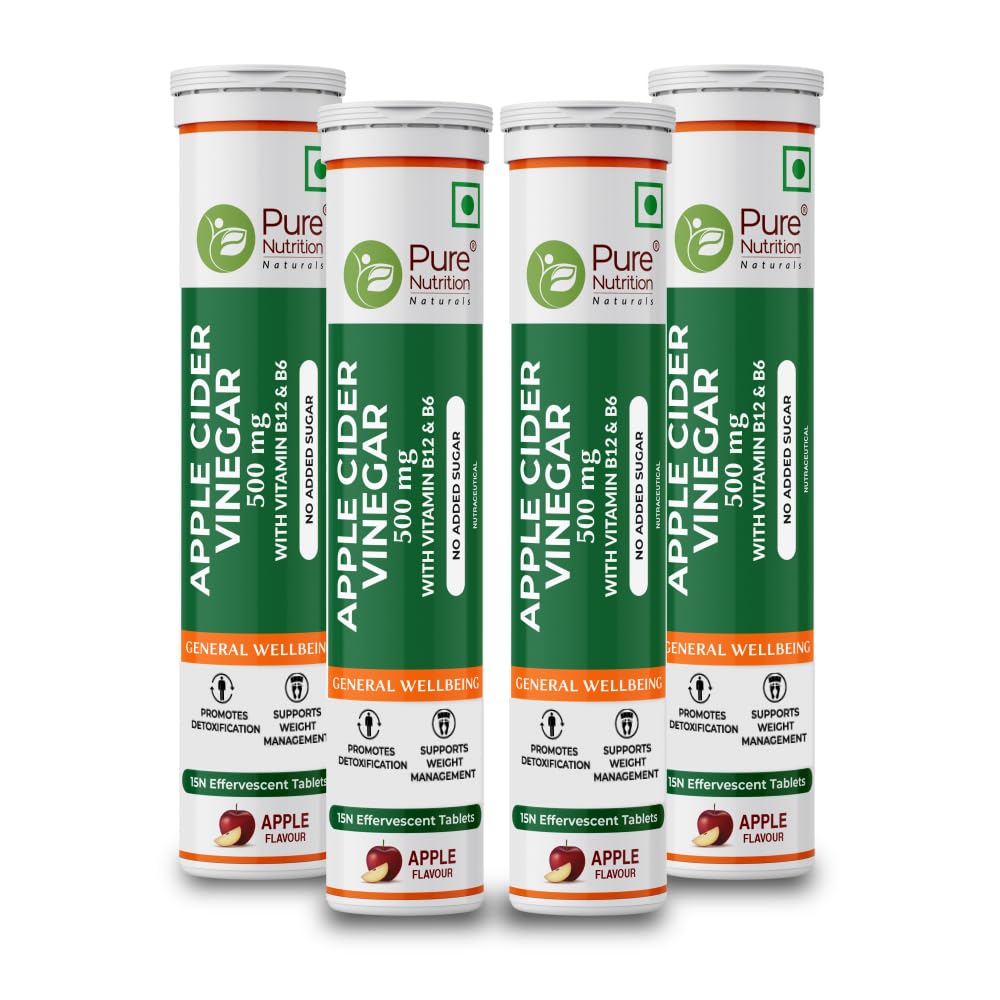 HomeHealth & PersonalDiet & NutritionHealth SupplementsPure Nutrition ACV 60 Effervescent Tabs (15 x 4) for Weight Management & Gut Health | Apple Cider Vinegar with Mother Vitamin B12 & Garcinia Cambogia To enhance metabolic function & Easy Digestion