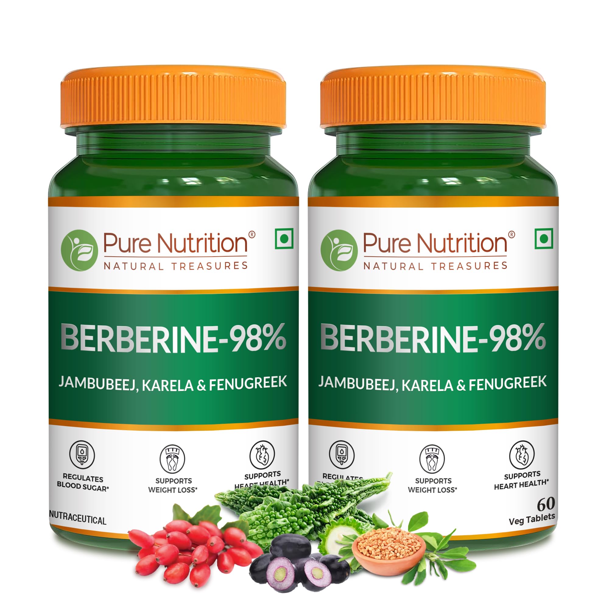 Pure Nutrition Berberine Supplement - 120 Veg Tablets (60x2) | 98% Berberine with Jamun Beej Karela & Fenugreek Extract | Supports Healthy Blood Sugar Weight Management & Heart Health | Natural Formula for Holistic Wellness