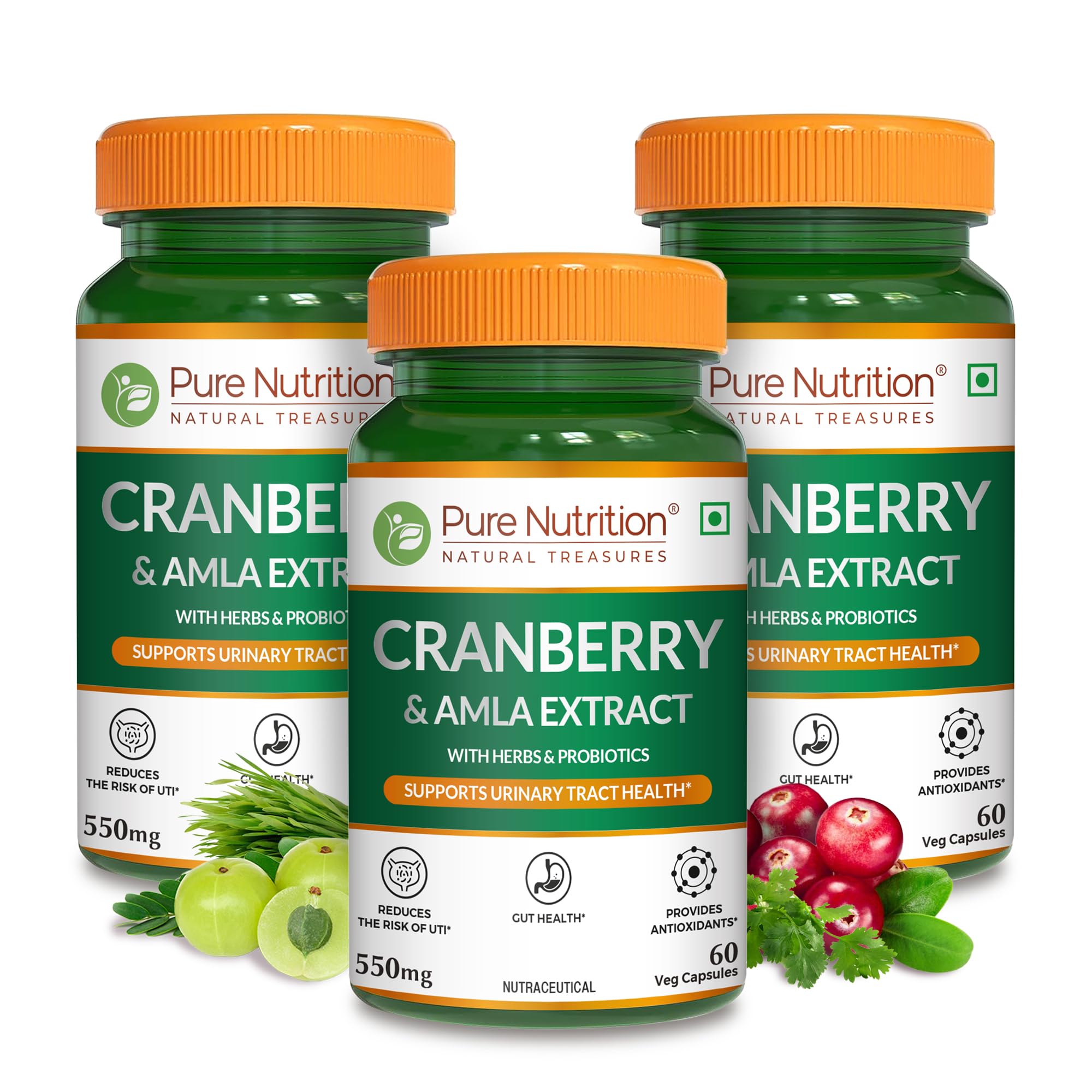 Pure Nutrition Naturals Cranberry supplement is formulated using pure cranberry extracts and other nutrients & herbs to support smooth urological functioning. Cranberry extract contains compounds called proanthocyanidins which prevent bacteria from attaching to the lining of your urethra and bler. If bacteria cannot stick to the tissues they will not multiply and cause an infection. Thus Cranberry for UTI is an ancient remedy. Pure Nutrition Cranberry Caps. consist of extracts of cranberry amla coriander and vetiver along with probiotics which offer antioxidant benefits support urological & health and . Pure Nutrition Cranberry is a potent Cranberry supplement for women and men to fight urinary tract health and overall health.