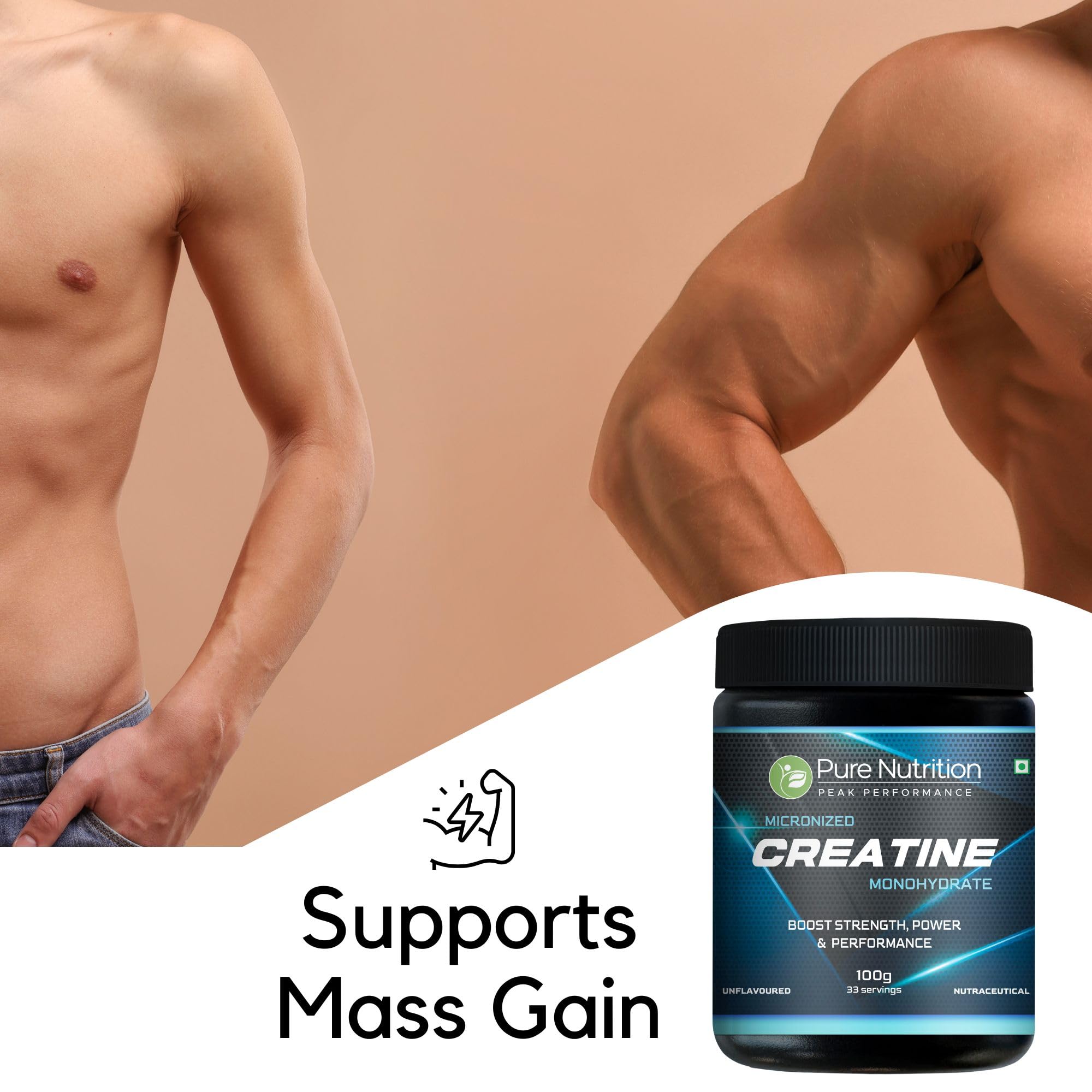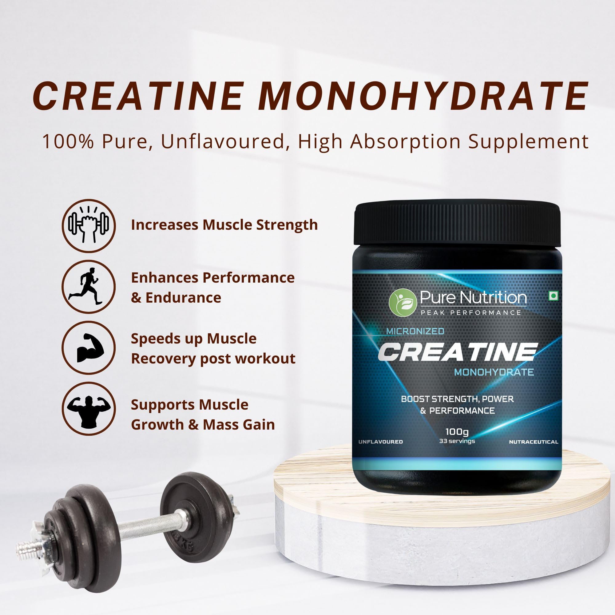 Pure Nutrition Micronised Creatine Monohydrate Powder Pre/Post Workout Supplement Instant Energy for Athletic Performance Fast Recovery Increased Muscle Mass Unflavoured 100g 33 Servings