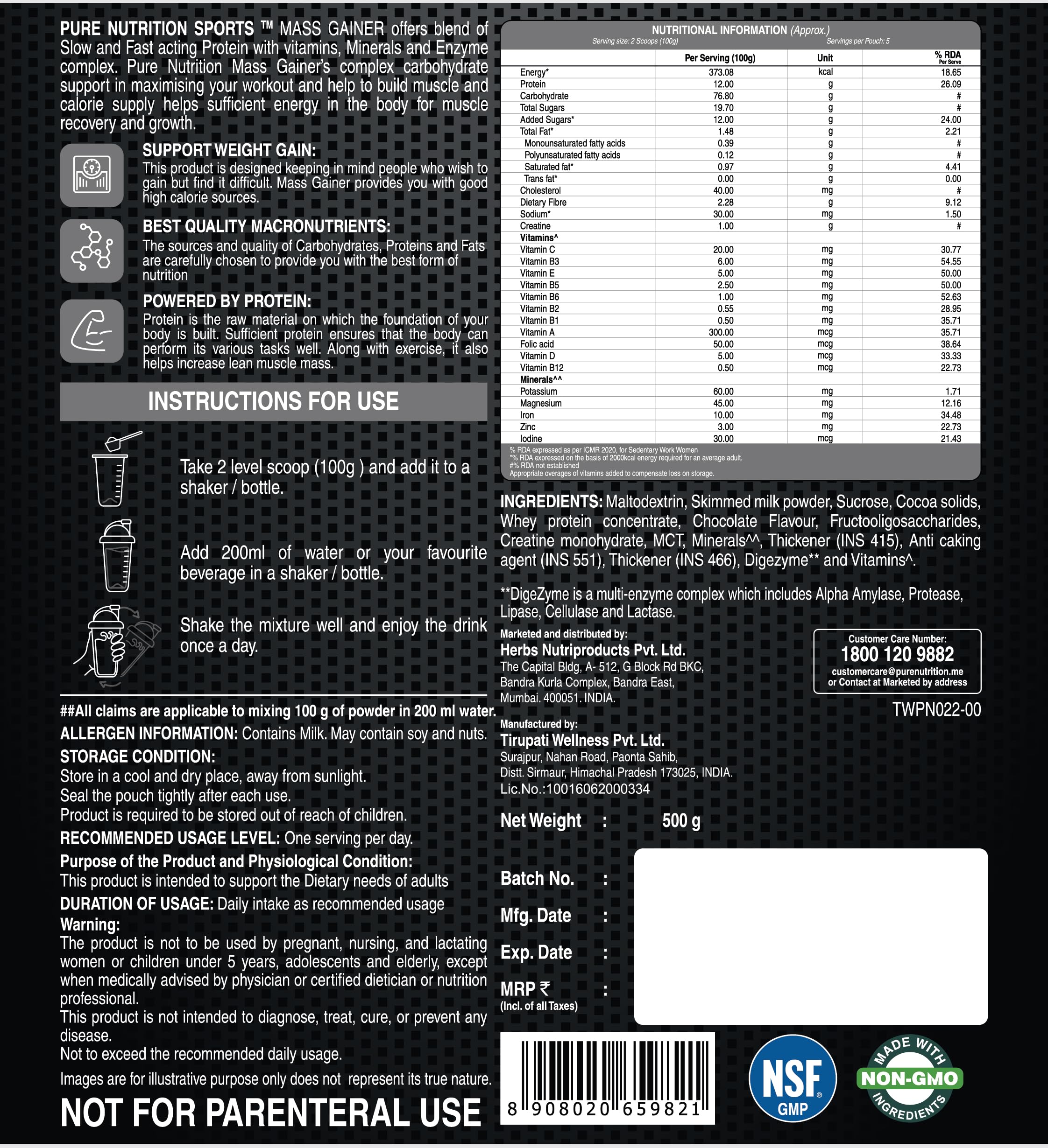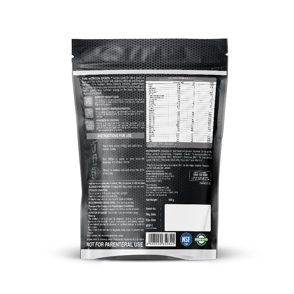 Pure Nutrition Sports Mass Gainer contains a balanced blend of macronutrients from pure sources—carbohydrates protein and fats to help energy levels and build muscle mass for a healthy gain. It provides nutrient support for gaining lean muscle mass and co