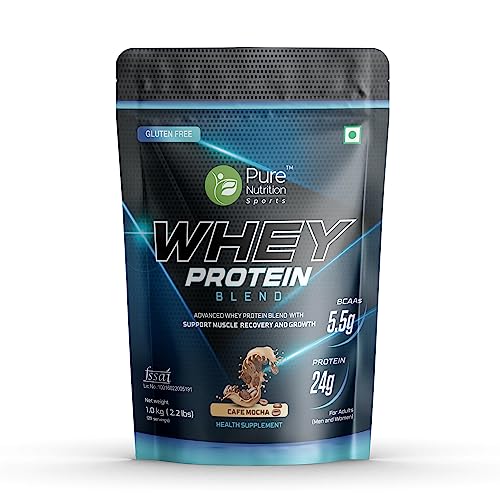 Pure Nutrition Naturals Whey Protein Blend With Whey protein Isolate and Concentrate For Muscle building Lean muscle building 34 grams of protein per scoop - CAFÉ MOCHA 1 KG POUCH