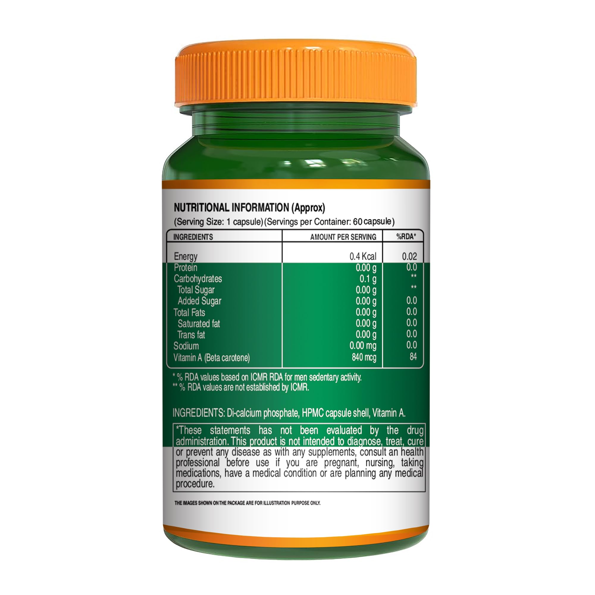 Pure Nutrition Plant-Based Vitamin A from Beta Carotene | 60 Veg Capsules for Men & Women | Supports Healthy Eyesight Night Vision & Eye Protection | Fights Age-Related Eye Decline