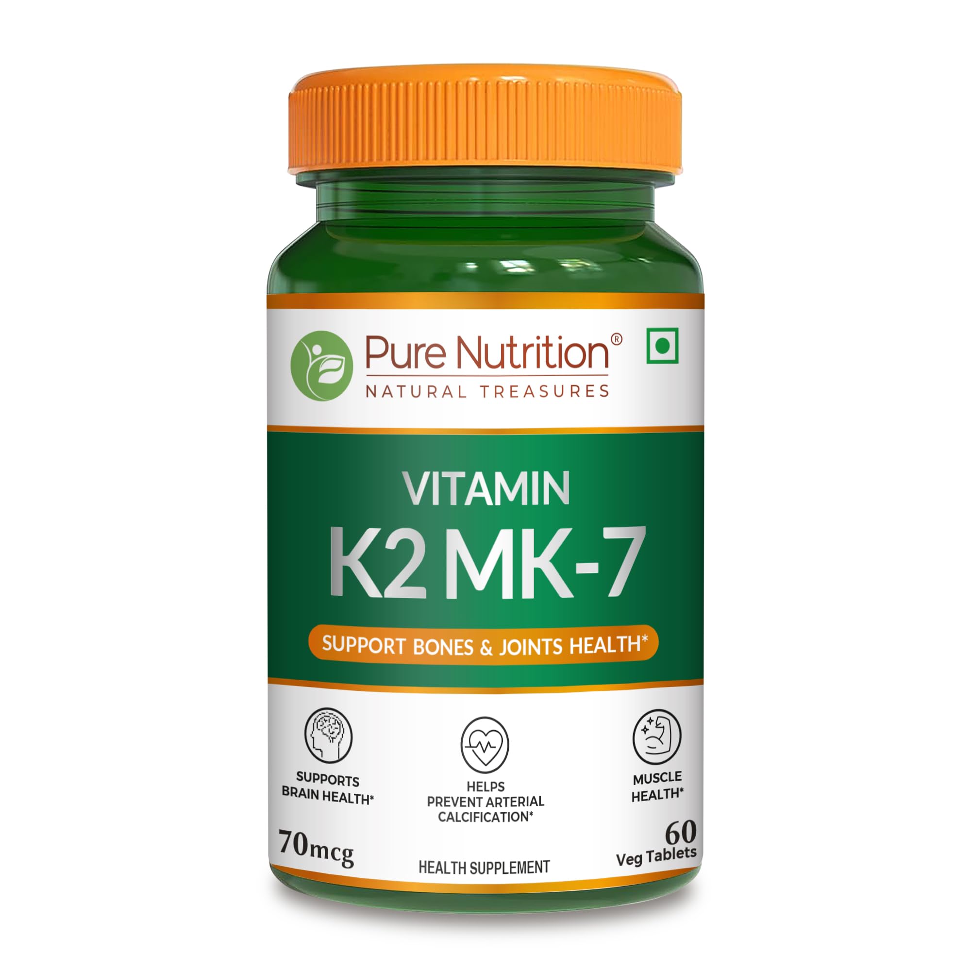 HomeHealth & PersonalDiet & NutritionHealth SupplementsPure Nutrition Vitamin K2 MK-7 - 60 Veg Tablets | Supports Stronger Bones Cardiovascular Health & Cognitive Function | Natural Bone Health Supplement for Men & Women | Enhances Calcium Absorption & Distribution