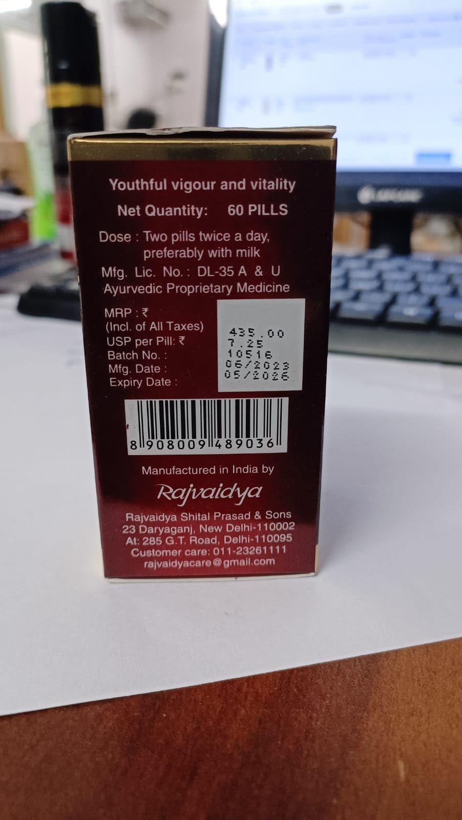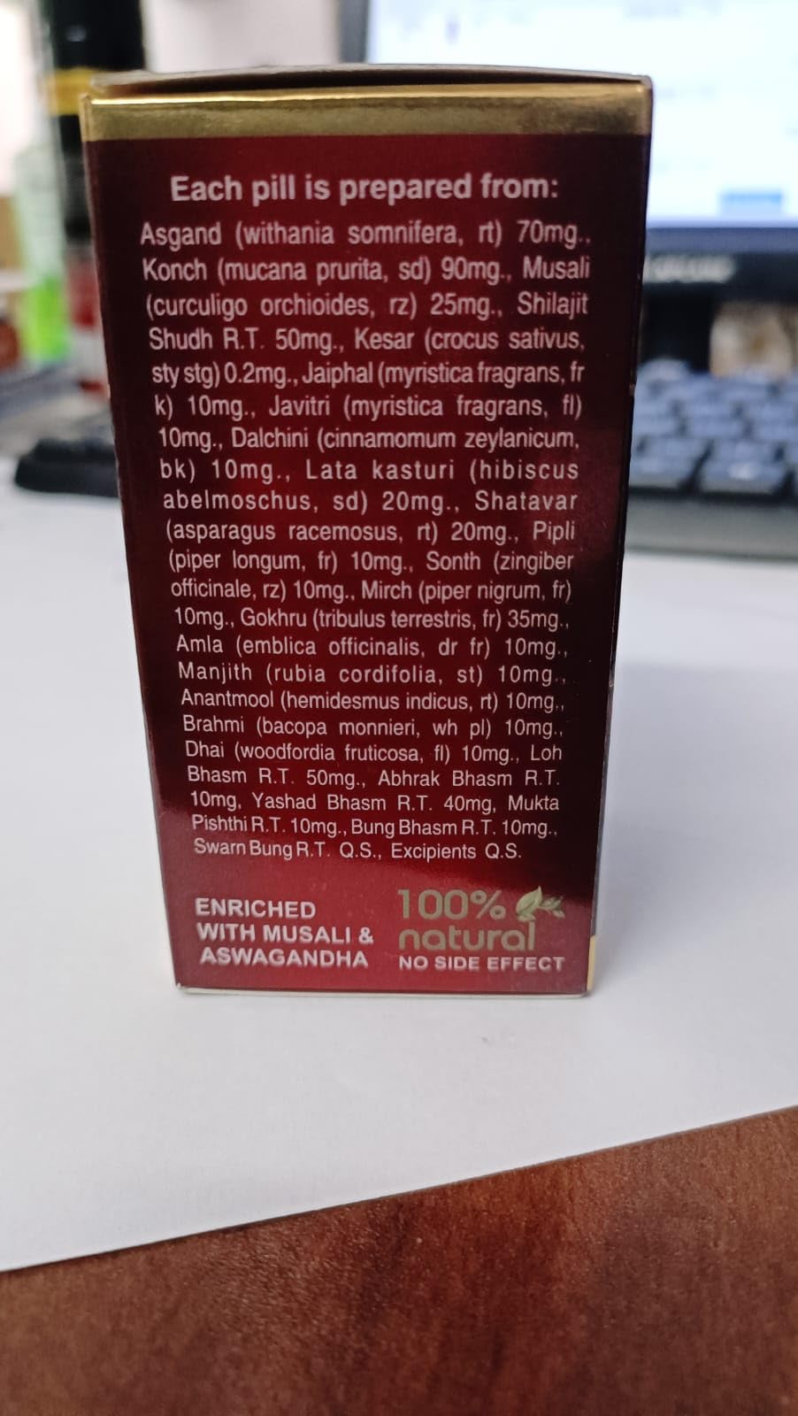 Gives Full Strength And Body Resistance To Men By Removing Their Present Day Illness And Establishing Complete Psychosomatic Health. Youthful Vigour & Vitality. Depression Nervousness Palpitations. Premature Old Age Syndromes.Aches In The Thighs And Calf Regions.Is Completely Safe And From Side Effects.