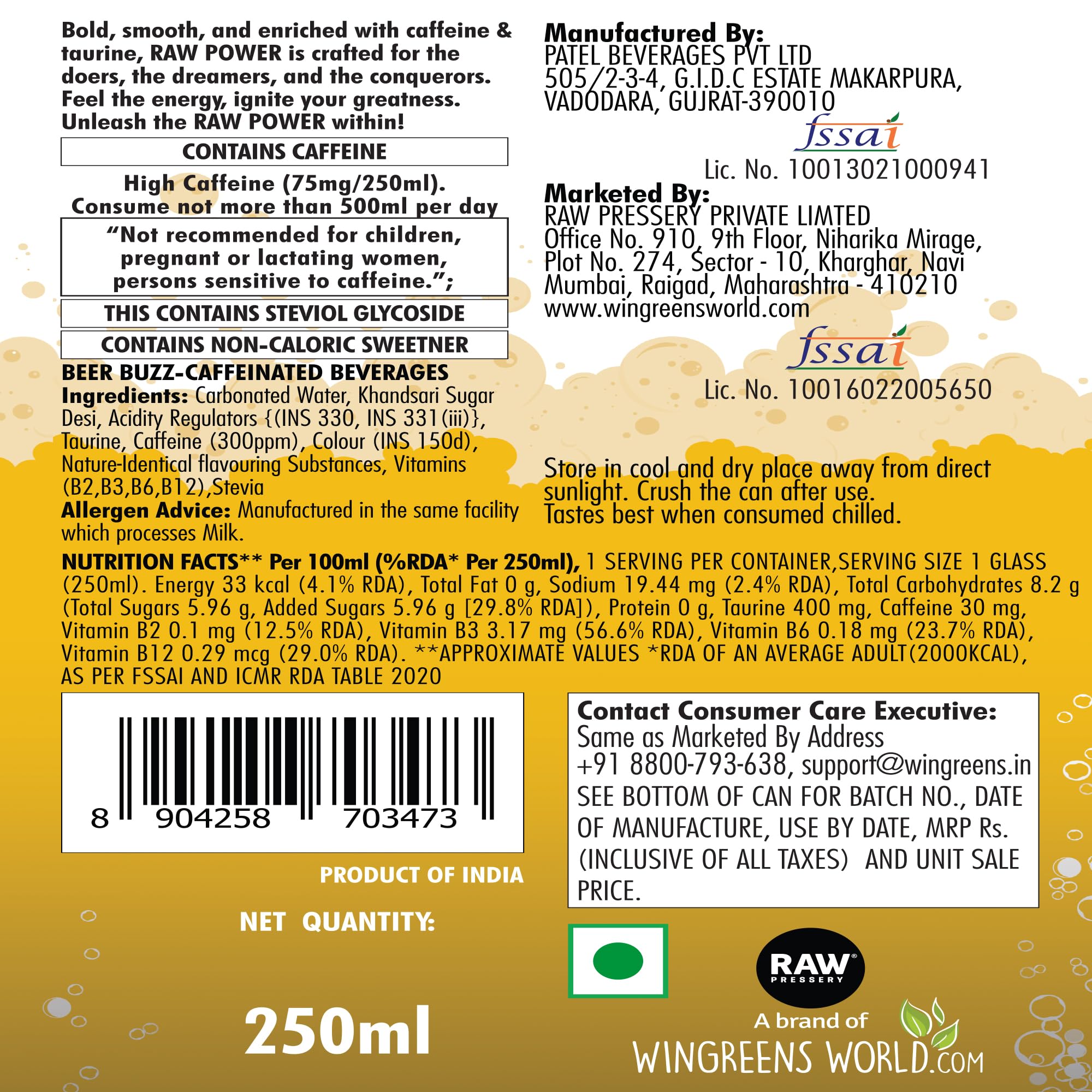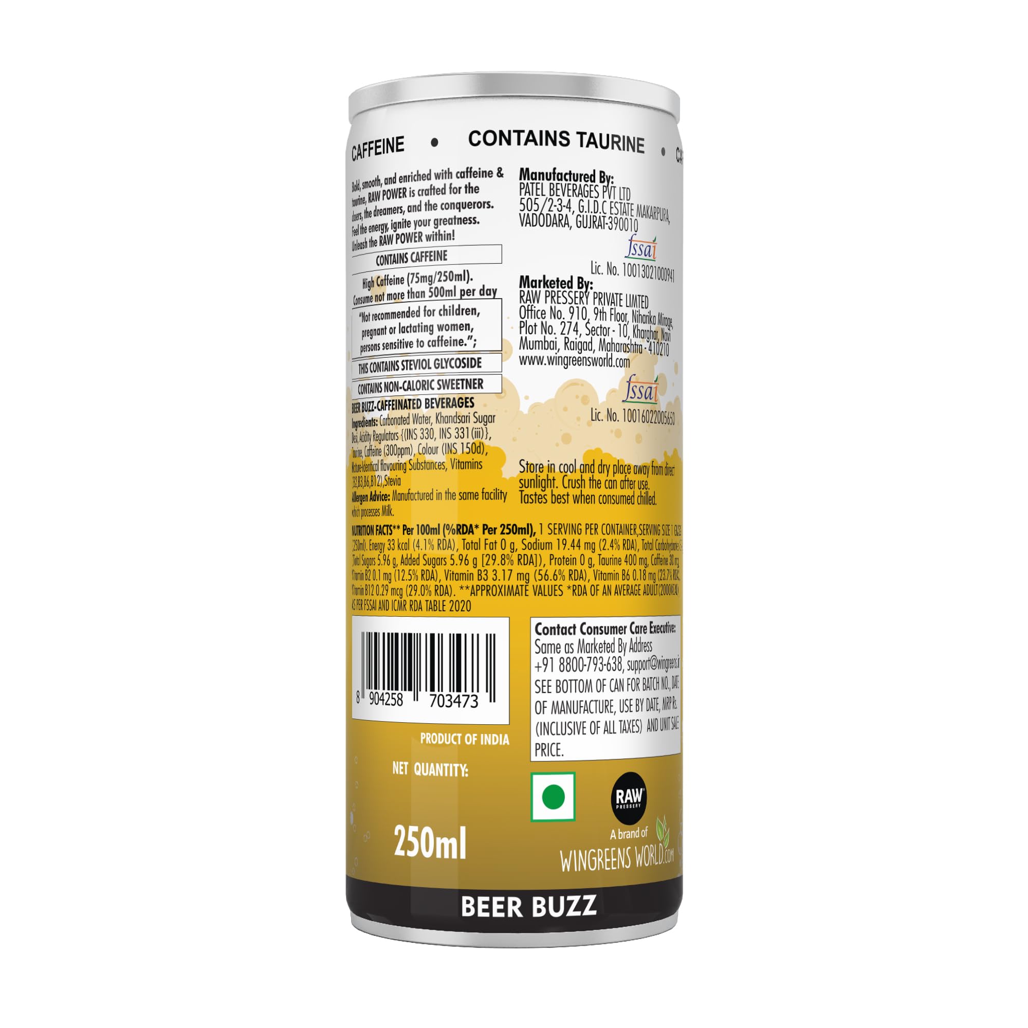 Raw Power Energy drink -Beer Buzz 250 ml (Pack of 6)