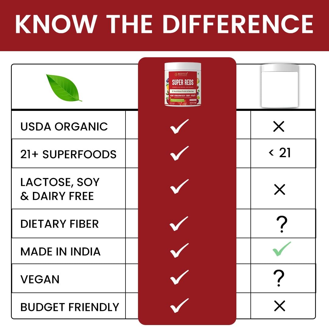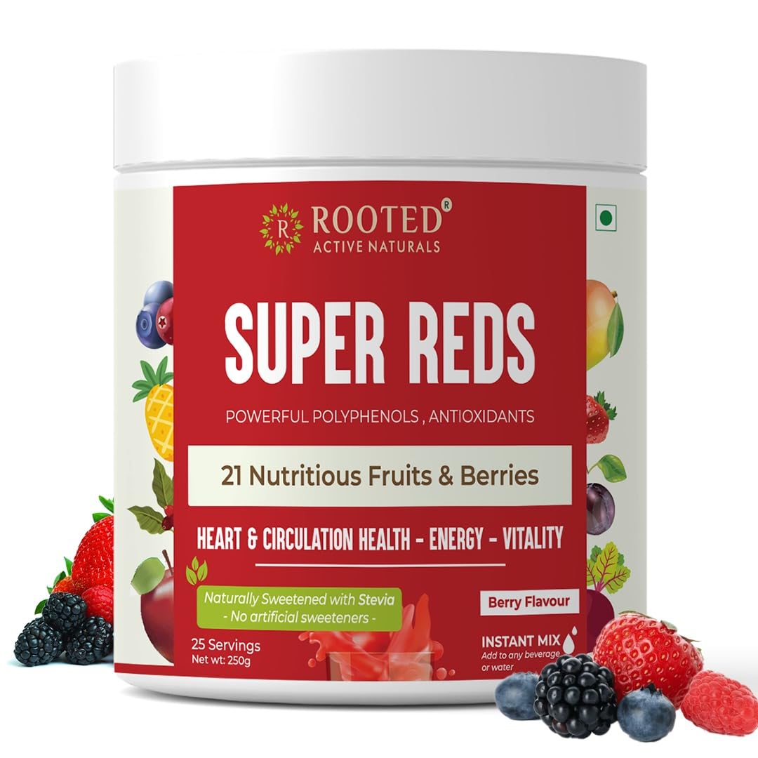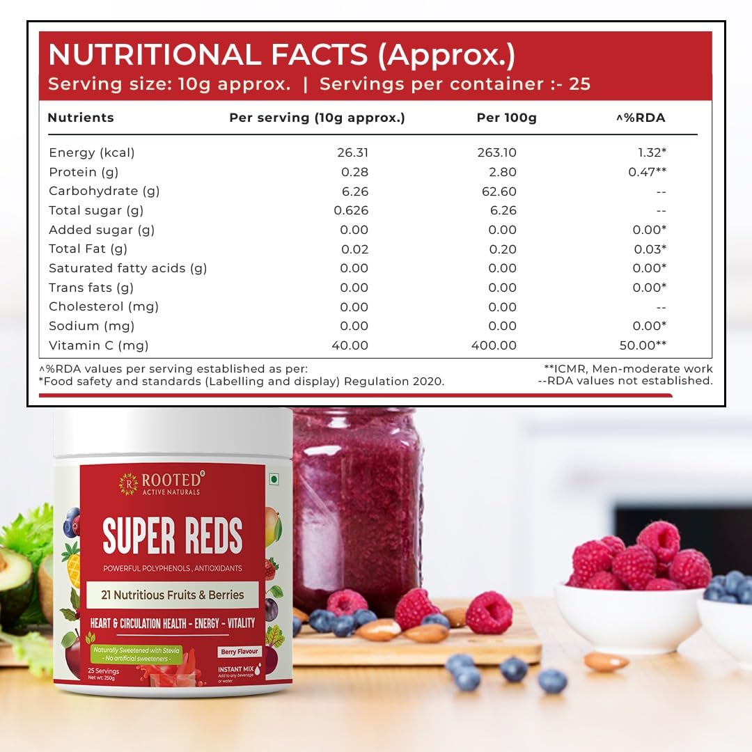 Rooted Actives Super Reds (250 g) 21 nutritious fruits berries & Stevia (No Added Sugar) | Rich in antioxidants flavonoids & polyphenols | Heart Circulation health Energy (Super Reds)