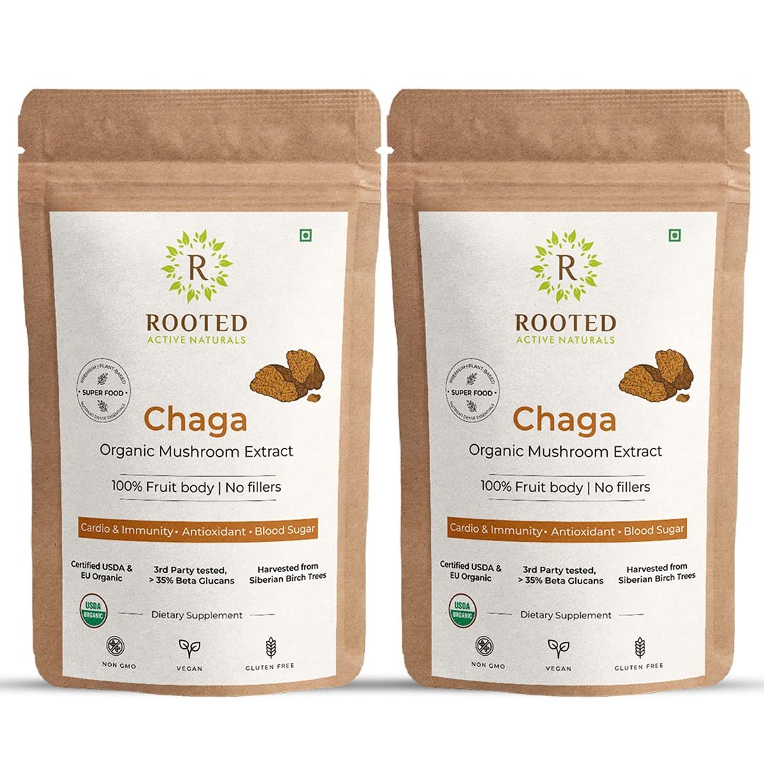 Rooted Actives Siberian Chaga Mushroom Capsules (60Gm) | Blood Sugar Heart & Immunity | Usda Organic | 35% Beta Glucans | Certified Organic Siberian | Pack Of 2